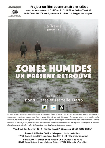 Dans le cadre des Journées mondiales des Zones Humides Projection du film documentaire "Zones Humides Un présent retrouvé" de Boris CLARET et Isabelle DARIO suivi d'un débat en présence des réalisateurs et de Céline RIVES THOMAS auteure du livre "La Langue des Sagnes.