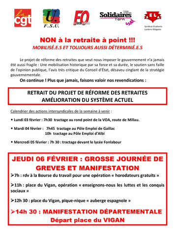 JOURNÉE DE GRÈVE ET DE MANIFESTATION contre la réforme des retraites