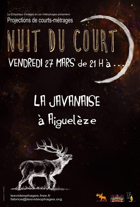 Et se prépare la Fête du Court-Métrage, disons Nuit du Court c'est plus joli, qui aura lieu le Vendredi 27 Mars à La Javanaise à Aiguelèze (Gaillac) . Cet évènement est organisé dans toute la France depuis plusieurs années par l'Agence du Court-Métrage, cette année, du 25 au 31 Mars,