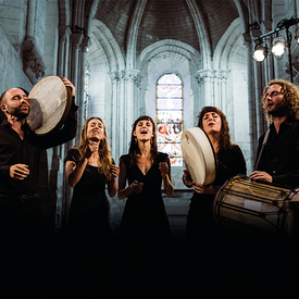 Forts de leurs nombreuses expériences respectives, les 5 musiciens font converger leurs personnalités musicales dans un concert sans frontières empreint de cultures balkanique et méditerranéenne au service d'un bal folk toujours vivant, créatif et dansant.