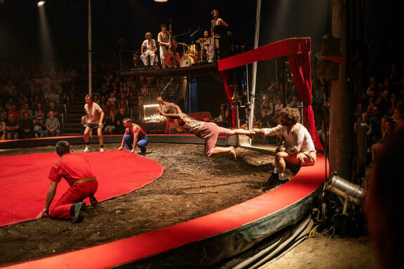 Saison de Cirque : un spectacle conçu comme une vraie déclaration d'amour au cirque, qu'il soit d'hier ou de demain, de France ou d'ailleurs. Et en installant leurs coulisses au centre de la piste, ils vous dévoilent leur intimité, leur humour, leur poésie. Dressage de chevaux en liberté, portés acrobatiques, corps qui s'envolent dans les airs et numéro de clown triste…Tous unis par une énergie de feu, ils réinventent « un cirque ancien nouveau » avec un sens aigu du partage.