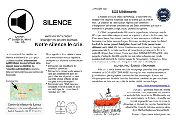Après quelques mois d'interruption lié à un virus qui ne connaît pas les frontières, nous reprenons notre cercle de silence. Pendant 1 heure, le premier samedi de chaque mois, nous manifestons en silence notre désir de savoir que la dignité humaine des personnes migrantes n'est pas bafouée.