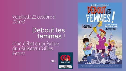 Le VENDREDI 22 OCTOBRE a lieu une PROJECTION DÉBAT au cinéma CGR ALBI LAPÉROUSE sur le film DEBOUT LES FEMMES qui a pour objet de mettre en lumière les "métiers du lien" et les conditions des agents d'entretien, accompagnantes d'enfants en situation de handicap (AESH), aide-soignantes, aides à domiciles ect..