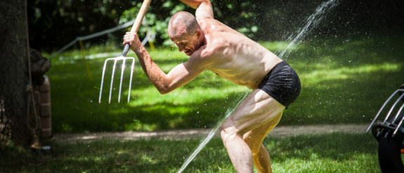 Deux personnages que tout oppose se retrouvent dans un drôle de monde agricole où les objets deviennent prétextes à toutes les facéties incongrues et acrobatiques. Dans ce petit théâtre circassien sans paroles, qui se joue en plein air et en pleine herbe, le duo d'équilibristes virtuoses emmène cette variation sur le thème du Clown Blanc et de l'Auguste sur les terres d'un Buster Keaton défiant les lois de l'apesanteur.