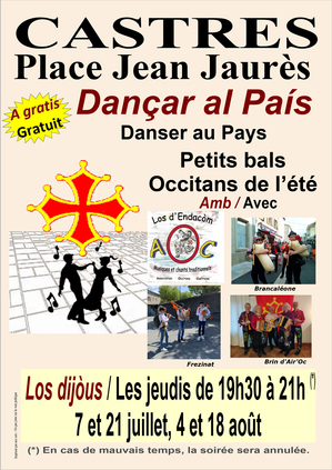 L'Institut d'Études Occitanes - Section Tarn et le Centre Occitan del País Castrés vous donnent rendez-vous tout l'été, les jeudis soirs, tous les quinze jours, au son des grailes, crabas, vielles, bohas, percussions, harpes, guitares, etc.