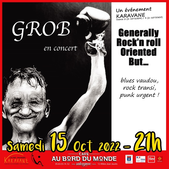GROB (Generally Rock'n roll Oriented But…) est un power trio qui propose un univers très personnel, à la musique joyeuse et possédée. On y trouve à la fois la noirceur d'un blues vaudou, la sensualité d'un rock transi, l'urgence du punk, bref du pur rock'n roll quelque part entre The Cramps et Noir Désir.