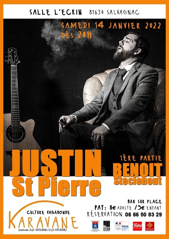CONCERT JUSTIN SAINT PIERRE SAMEDI 14 JANVIER 2023 A PARTIR DE 20 HEURES A L'ECRIN SALVAGNAC