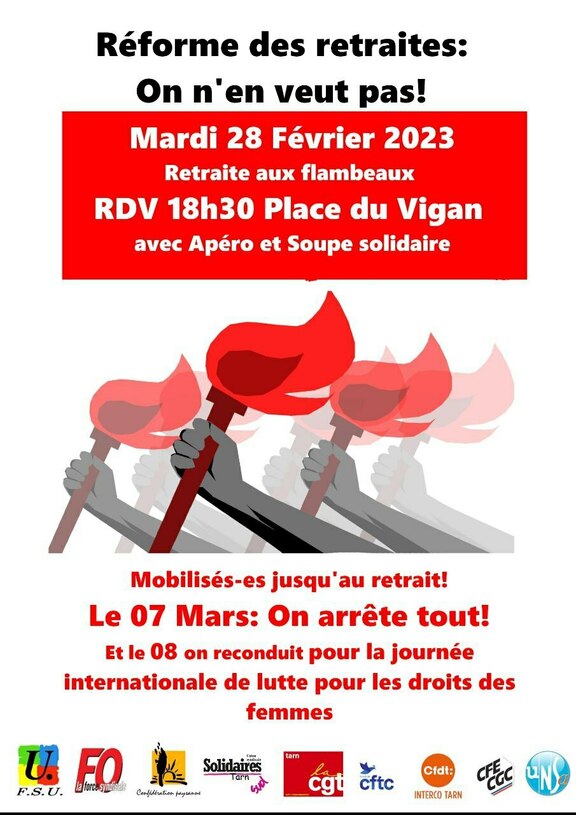 MOBILISATION contre la RÉFORME DES RETRAITES : RETRAITE AUX FLAMBEAUX
