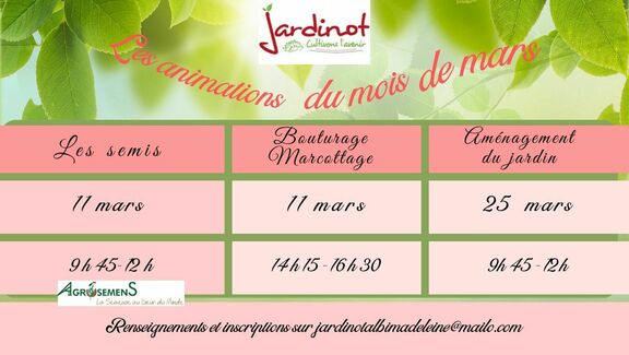 Jardinot Jardin-Ecole organise trois animations au mois de mars.