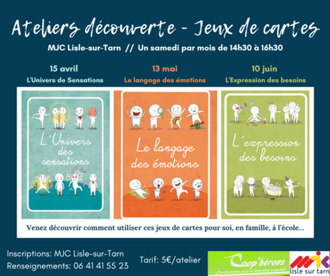 Un samedi par mois de 14h30 à 16h30 à la MJC de Lisle-sur-Tarn.