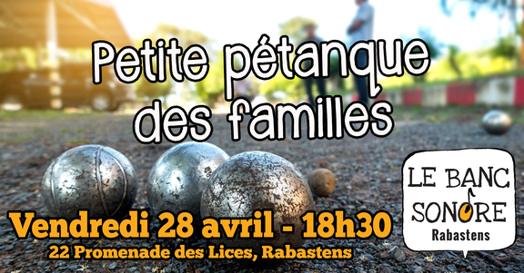 C'est le retour de la pétanque devant le Banc Sonore. C'est une pétanque libre, on se retrouve sur la terrasse pour s'organiser ensuite en fonction du nombre d'équipe.