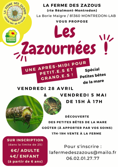 De 15h à 17h, venez passer une après-midi les épuisettes dans la mare à la découverte des petites bêtes qui y vivent. A partir de 6 ans. Sur inscription.