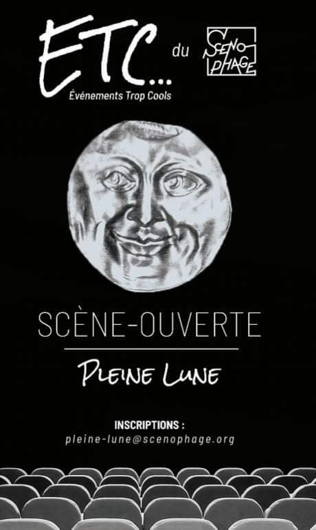 Chaque Pleine lune, le Scénophage ouvre ses portes aux amoureux de la poésie, de la chanson, de la musique, et toute performance artistique. Venez proposer vos créations, que la transformation opère. Haouuuuu! crieront les loups en "coeur". Entrée libre. Bar associatif sur adhésion.