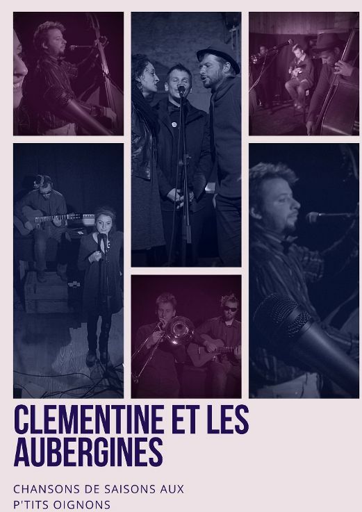Clémentine et les Aubergines est un quatuor de chanteur.euses multiinstrumentistes, où trombone, contrebasse, guitares, piano et cajon donnent à chaque morceau une couleur particulière aux compositions originales agrémentées de quelques reprises (Georges Brassens, Michèle Bernard, Francesca Solleville ...).