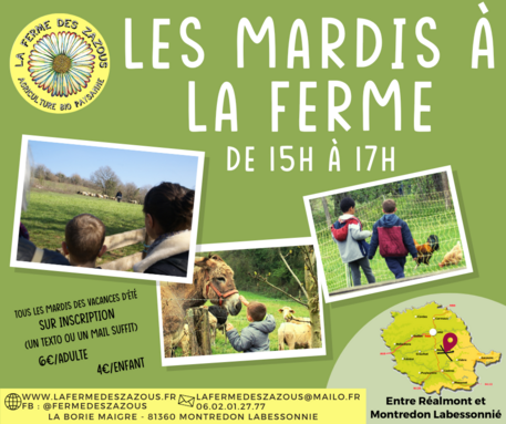 Envie d'une petite balade champêtre, de venir découvrir les animaux de la ferme. C'est tous les mardis de 15h à 17h à la Ferme des Zazous.