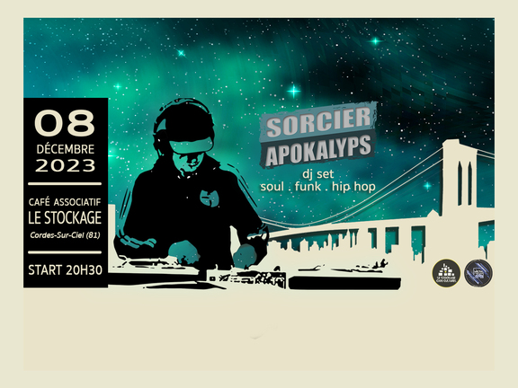 Sorcier Apokalyps (dj & beatmaker) débarque au café culturel et associatif Le Stockage pour partager sa passion musicale à travers un dj set autour de la black music (soul, funk, hip hop, jazz, afrobeat...)