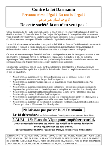 DE L'HOMME (LDH), MRAP, NPA 81, PARTI COMMUNISTE FRANÇAIS 81, PEPS 81, PARTI SOCIALISTE