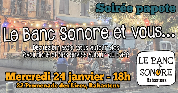 Une soirée pour faire le point sur vos remarques ou vos envies pour le Banc, ainsi que sur sa situation financière et les solutions qui peuvent être trouvées.