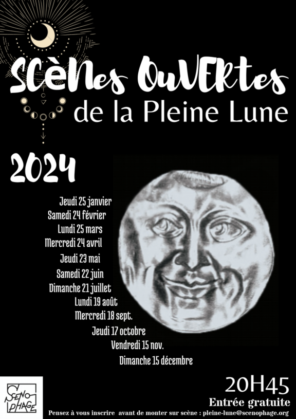 Si vous souhaitez anticiper votre inscrpiton, contactez le Scénophage ici : pleine-lune@scenophage.org