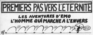 Forme d'expression BD stylo bille autour de Emo, l'homme qui marche à l'envers. Au fil des planches Emo exprime un point de vue poétique et décalé sur la réalité, au final une réflexion lumineuse et évidente sur le sens de la vie. Philippe Duteil s'inspire de son expérience de peintre exilé dans la campagne tarnaise. Emo est un road movie qui parle de politique, d'écologie et des liens sociaux.