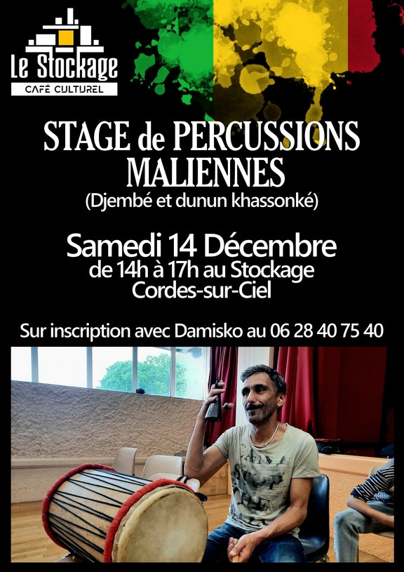 Prochain stage de percussions Maliennes au 𝕊𝕥𝕠𝕔𝕜𝕒𝕘𝕖 avec Damien Damisko le 6 avril de 14h à 17h !!!