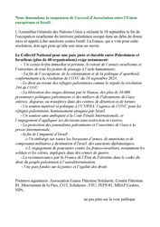 Premiers signataires :Association France Palestine Solidarité, Comité Palestine 81, Mouvement de la Paix, CGT, Solidaires , FSU, PEPS 81, MRAP Castres, NPA,