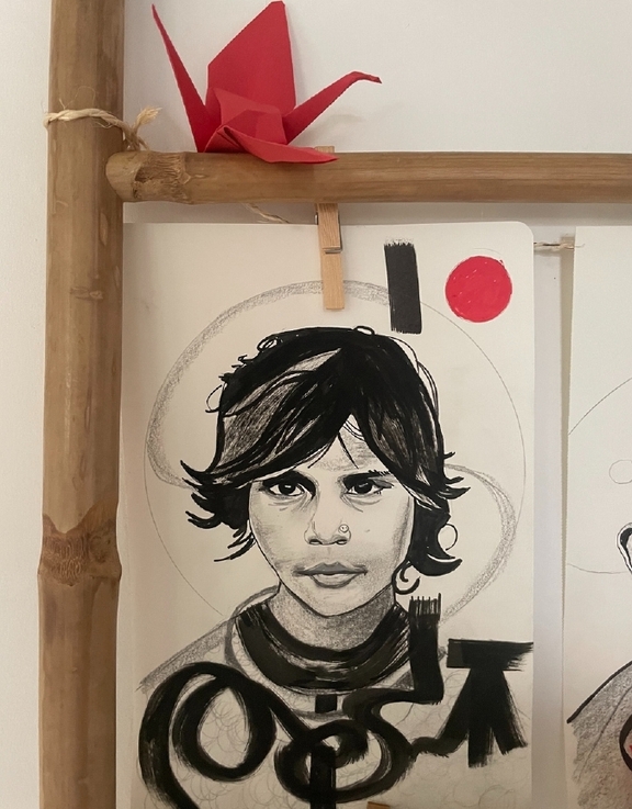 Ode à la résilience et à la liberté, inspirée par la culture japonaise et ses symboles spirituels. À travers une mosaïque de portraits marqués par le temps, l'artiste met en lumière la force intérieure de ceux qui ont surmonté des épreuves. La figure de la grue, emblème de longévité et d'émancipation, sert de fil conducteur à cette quête d'élévation et de transformation.