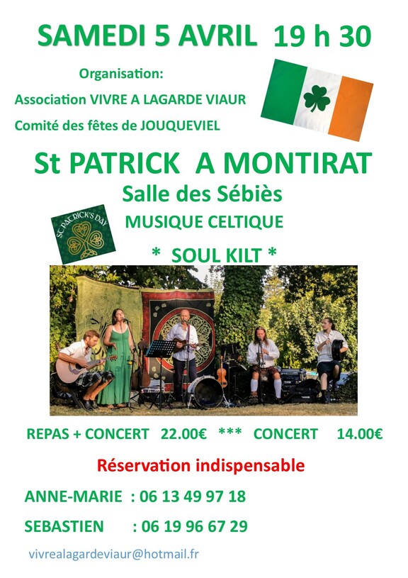 ST PATRICK à MONTIRAT 5 avril 19h 30