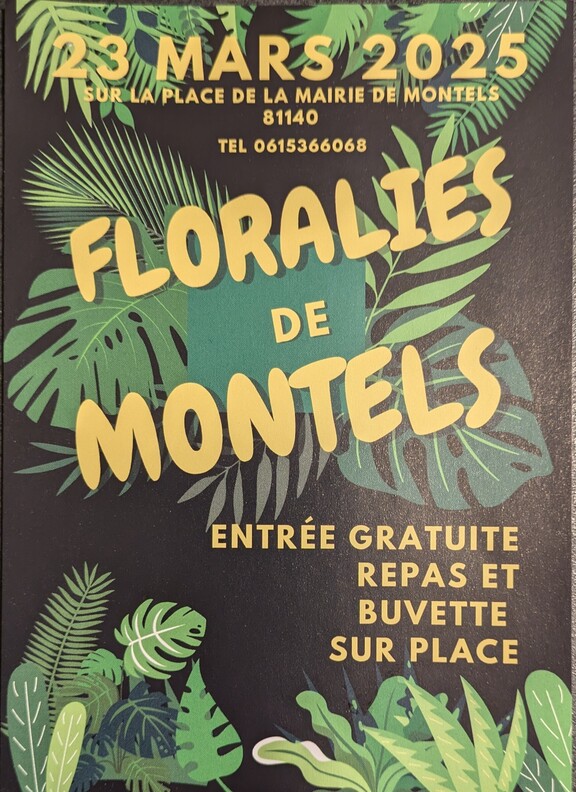 Floralies de Montels 8114 - Entrée gratuite - Repas et buvette sur place - Expositions de peintures et de sculptures à la mairie.