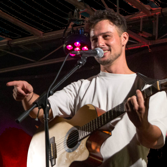 Á l'accordéon, guitare, percussion et chant, Florent propose un melting pot de chansons françaises pas forcément connues du grand public, surtout ses compositions.