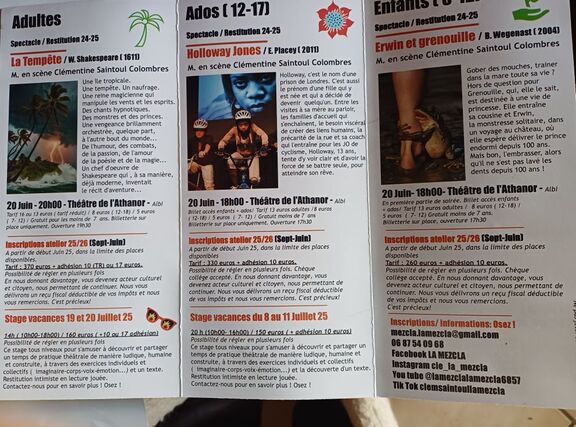 Spectacle ateliers théâtre annuels et inscriptions 25/26 ( enfants-ados-adultes) Cie La Mezcla
