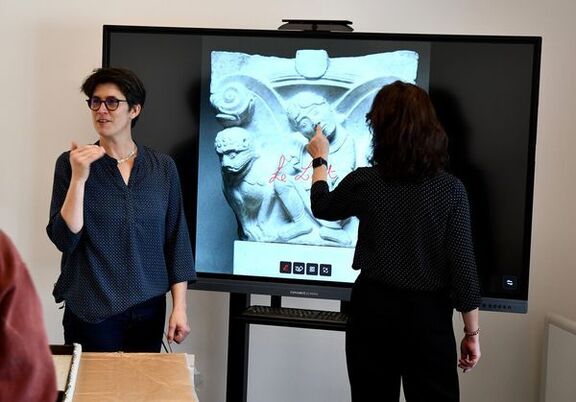 Avec Hélène Lapeyrère, responsable du service des publics au centre d'art et Jacques Py