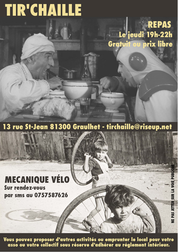 Ce jeudi, au Tir'Chaille, c'est la cantoche ! Viens partager un repas gratuit ou à prix libre confectionné par notre équipe de chef.fe.s étoilées autoproclamées. Et si t'as de la chance y aura du dessert !