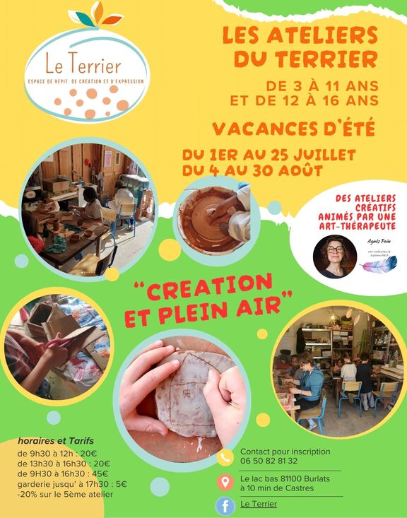 Ateliers de création artistique pour enfants à partir de 3 ans et ados à partir de 12 ans.