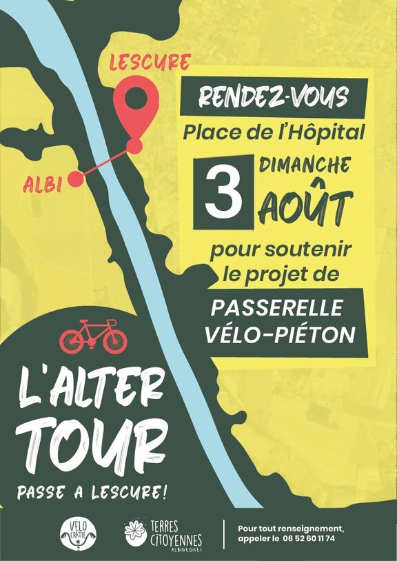 L'Alter Tour est une manifestation itinérante, à vélo, ayant pour but de valoriser les initiatives locales en faveur de la transition écologique et sociale. Cette année, les cyclistes parcourront un itinéraire allant de La Souterraine dans la Creuse à Argelès Gazost dans les Hautes-Pyrénées, du 7 juillet au 20 août.
