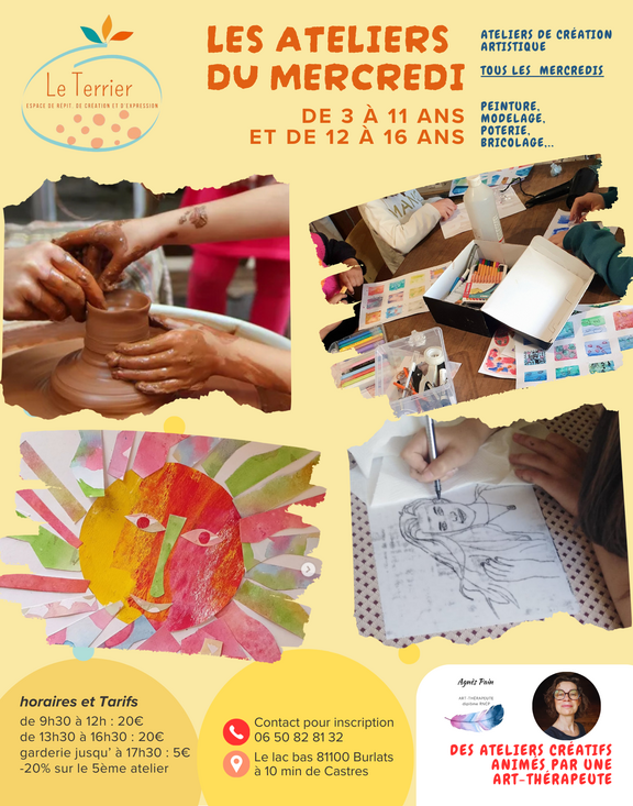 Modelage et poterie sur le tour , dessin, peinture, bricolage.