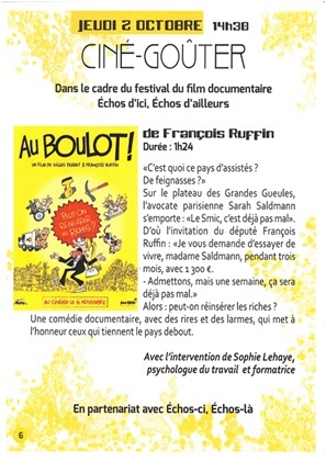 Dans le cadre du festival du film documentaire Échos d'ici, Échos d'ailleurs