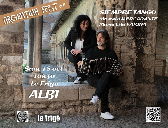 Marcelo MERCADANTE, grand Maestro du bandonéon et compositeur, sera en compagnie de Maria Eda FARINA, voix profonde du tango, pour nous communiquer leur passion du tango, à travers un répertoire choisi , de Gardel à Piazzolla ! Ne manquez pas ce 1er RV du festival ARGENTINA qui a lieu au Frigo, partenaire du festival ! Réservation conseillée :