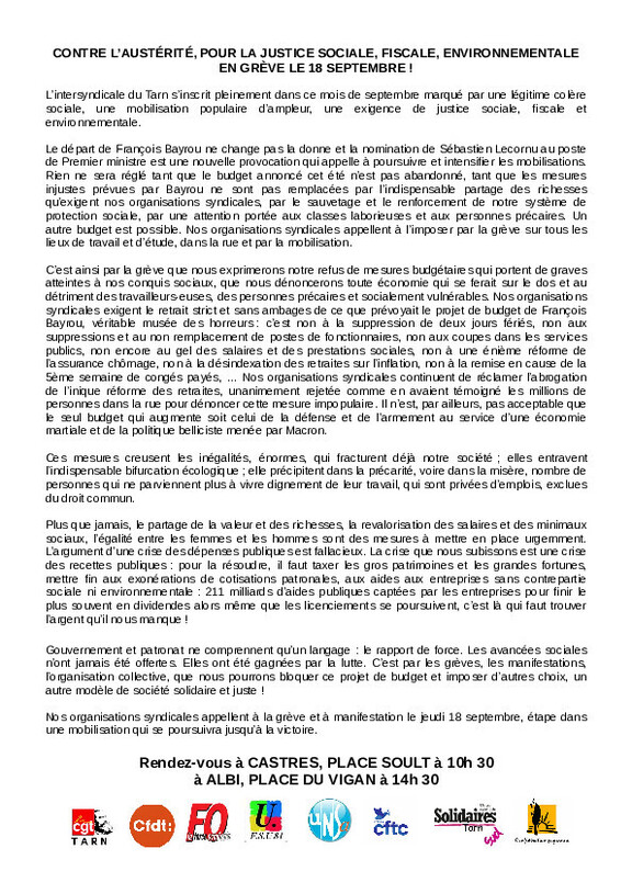 Journée de grève et de mobilisation à l'appel de l'intersyndicale.