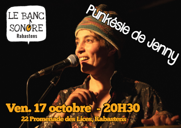 Jenny écrit de la poésie qui déborde et propose des concerts à vivre, elle joue depuis plus de dix ans dans les recoins, dans les culs de sacs, dans les squats, dans les sous-bois, bateaux, ressacs... Ses concerts sont des moments sacrément profanes, poétiques et punk à la fois. Un moment à partager autour de l'amour des mots et de la vie.