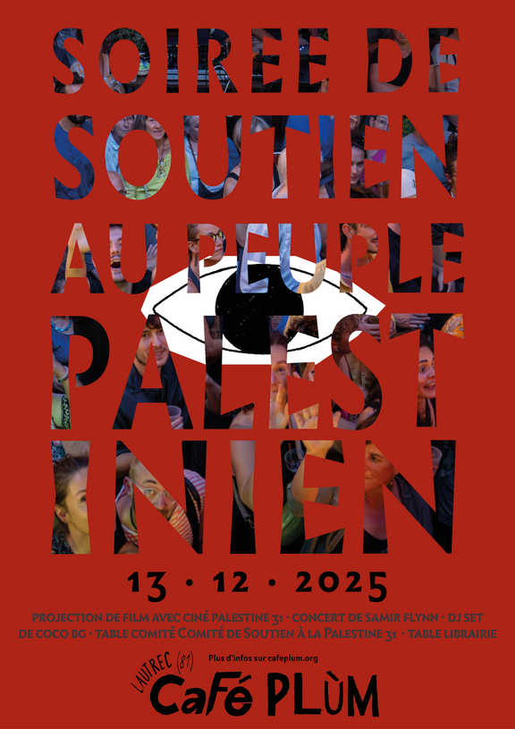 Face au génocide en cours en Palestine et plus particulièrement à Gaza, l'équipe du Café Plùm / association Ma Case ainsi que les collectifs et artistes mentionné·es ci-dessous, souhaitent apporter leur soutien par une soirée solidaire. Les fonds récoltés seront reversés à la cagnotte Résilience Gaza _ Solidarité concrète aux palestinien·nes de Gaza*