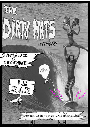 Concert exceptionnel des albigeois de The Dirty Hats à Le B.A.R à Albi plus d'1an après leur dernier show! Mélange explosif de surf punk pour un concert de folie!