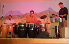 Entre tradition et modernité, ce trio vous fera voyager entre Cuba, Porto Rico, Rio de Janeiro et l'Afrique de l'est au son de conga, bongo, timbale, bombo, berimbau, pandeiro, shékéré, ganzas ...