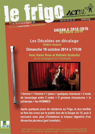 Le mercredi 15 octobre, à 19h30, venez régaler vos papilles puis vos pupilles avec la soupe au pistou de maître Ossart puis les Décalées, qui nous livreront ensuite leur spectacle explosif le dimanche 19 octobre, à 17h30!