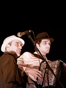 Ils sont deux, directement venus d'Argentine : Appollonio, le chanteur à la voix rocailleuse, au passé plus que trouble, et au sourire enjôleur. Marcellino, l'accordéoniste au doigté pénétrant, et aux petites activités extra-musicales guère plus honnêtes que celles de son compère. Et, à coup de chansons "d'amours-tango" (et pas à l'eau de rose!), ils vous entraînent dans leur spectacle intimiste et élégant, entre tour de chant et cabaret.