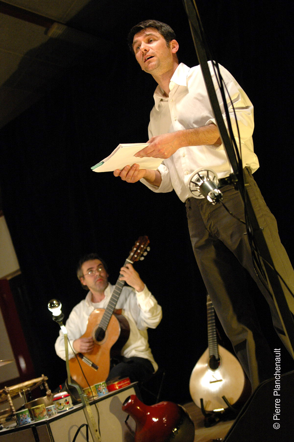 L'écrivain est un habitué des confrontations publiques. Le musicien est un instrumentiste généreux : guitariste (sérieux), tromboniste (courtois), musicien du monde (rare).
