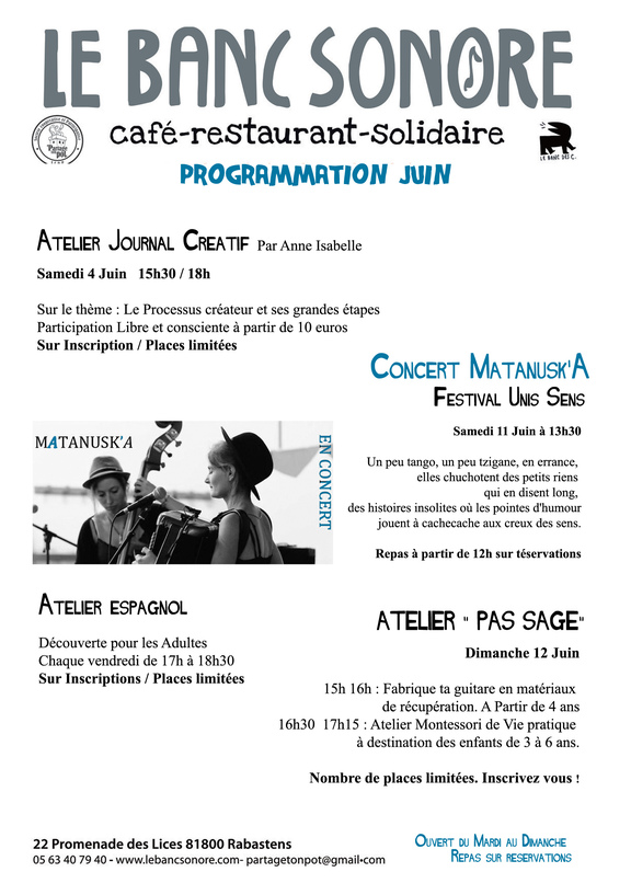 Atelier gratuit sur Inscription au 05 63 40 79 40