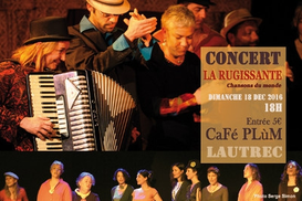 Eclats de voix chaleureux, chansons populaires d'Italie, d'Ukraine, d'Espagne, d'Afrique du Sud ou du Brésil, compositions originales et arrangements pour 3 ou 4 voix : La Rugissante, 20 voix et 1 accordéon, est un tour du monde vocal, une mise en bouche pour les âmes voyageuses.