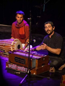 Olivier Olivero (harmonium indien, tambura, santour, contrebasse, accordéon, bapang, claviers, kana, shruti box, machines…) / Sébastien Lauquère (basse électrique, FX sounds, tanpura, beat-making et percussions indiennes : kartals et pakawaj).