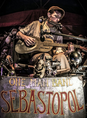 Installé dans une malle de magicien qui se déploie, interprète avec un sacré grain de folie, un répertoire imprégné de Swing, de Blues, Gospel, Jazz Country, Rag-time, Cajun…